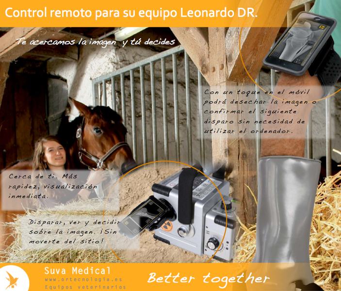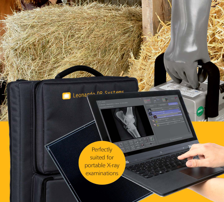 Gracias a su bajo peso, diseño compacto y a que es cómodo para transportar, Leonardo DR nano puede ser utilizado prácticamente en cualquier lugar y en cualquier momento. En veterinaria, el sistema puede ser utilizado en clínicas equinas, consultorios veterinarios generales y hospitales veterianrios.